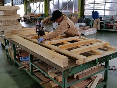 自社工場にて木箱・木枠・木製パレット・強化ダンボール箱を製造しています。